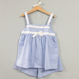 Pijama de mujer de tirantes, corte sobre pecho. cinta de adorno y lazo.